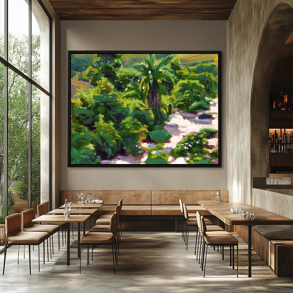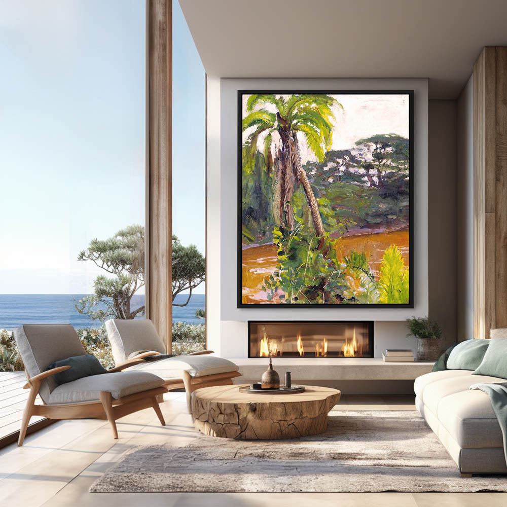 African Landscape Painting with a River and Palm Tree