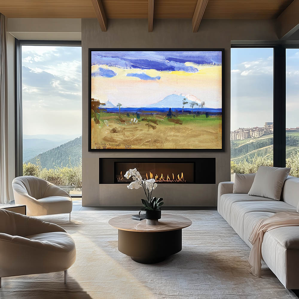 African Landscape Painting with Mountain Ndjaro in Background