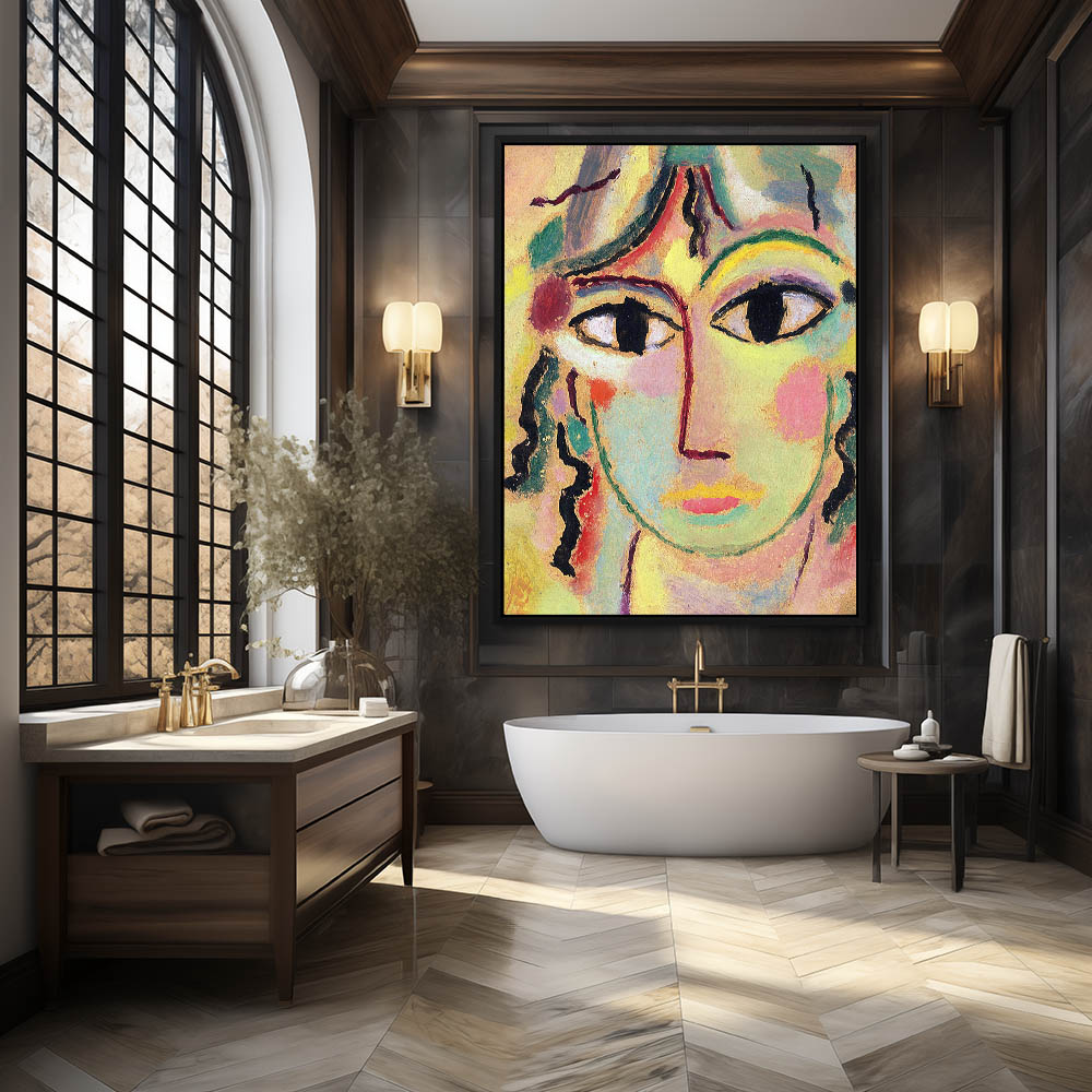 Abstract Figurative Portrait Painting of the Head of a Girl in Multicolors
