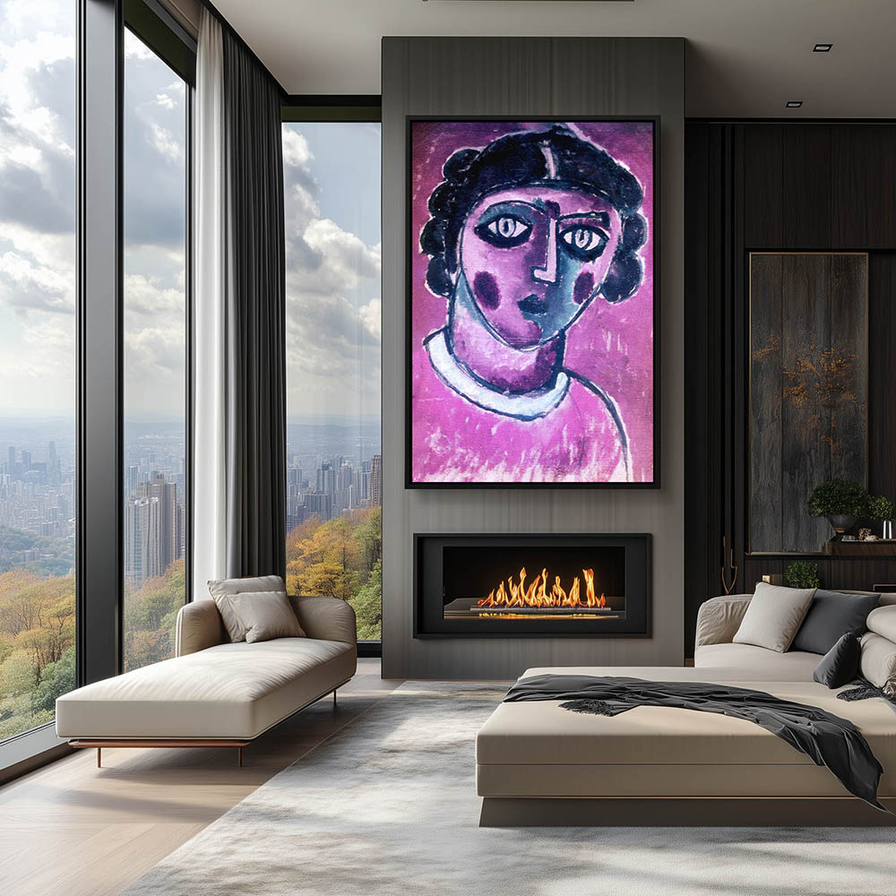 Abstract Figurative Portrait Painting of a Girls Head in Violet