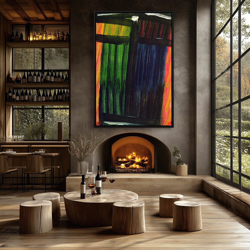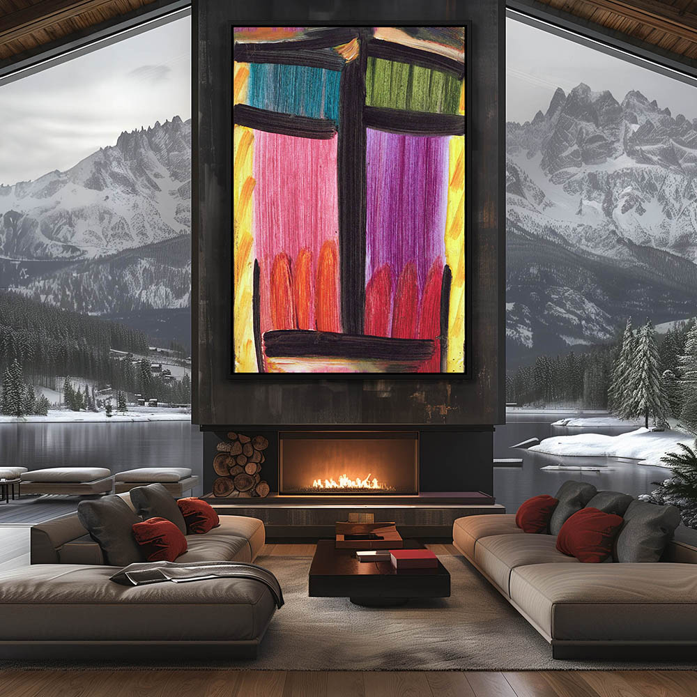 Abstract Figurative Painting of a Head in Multi Colores Orange Black Blue Green Red