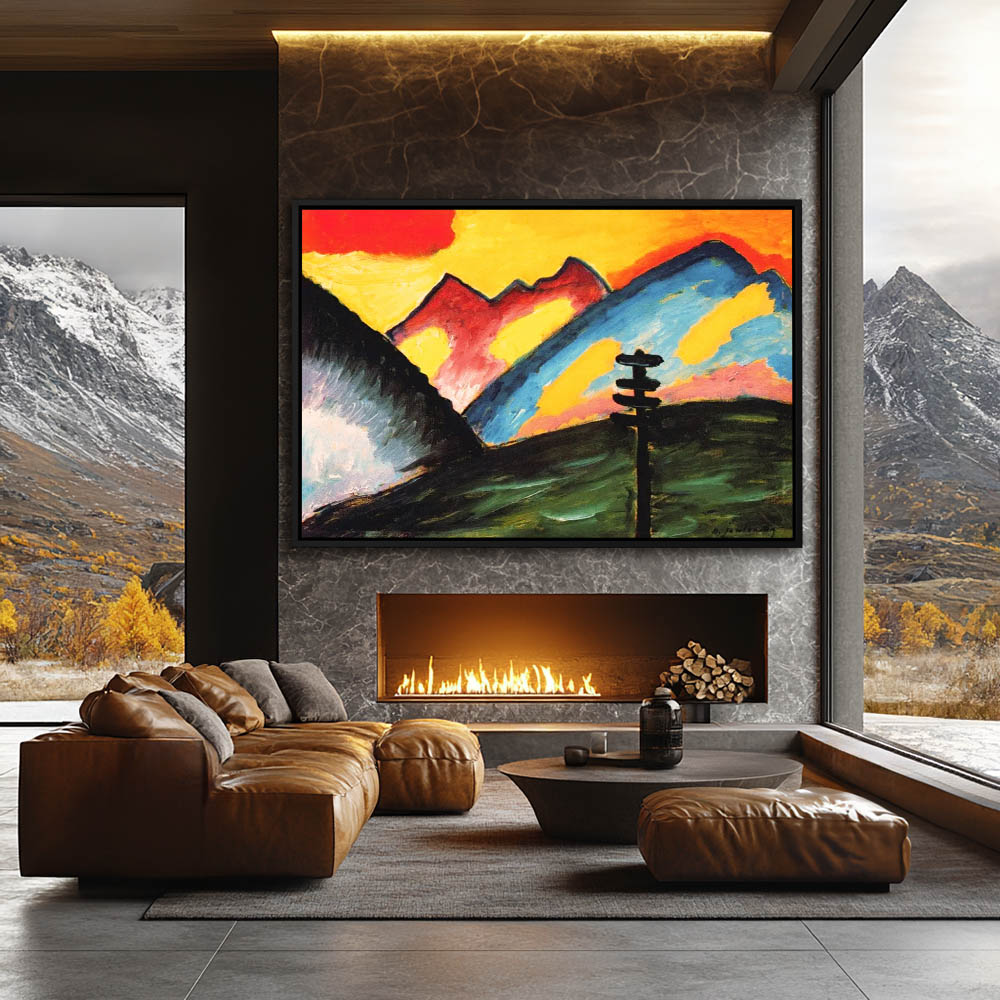 Abstract Landscape Painting with Mountains and Telegraph Pole