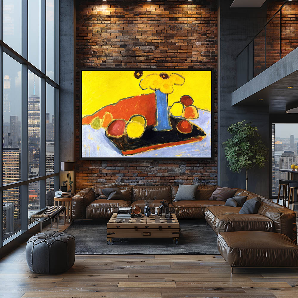 From $29.97Abstract Still Life Painting with Flowers and Fruit on Yellow Back Ground