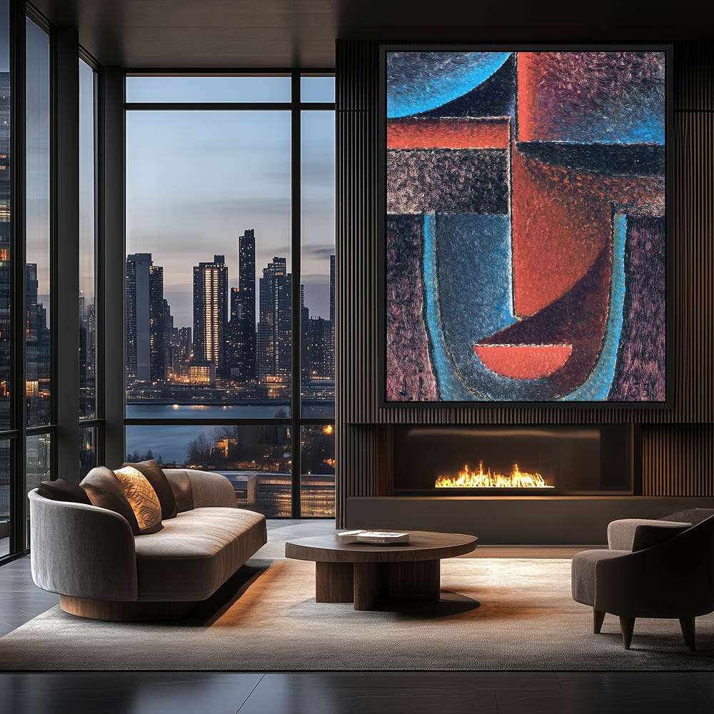 Abstract Figurative Head in Blue and Red