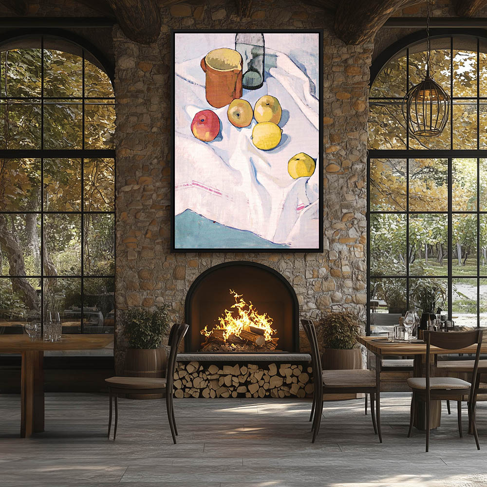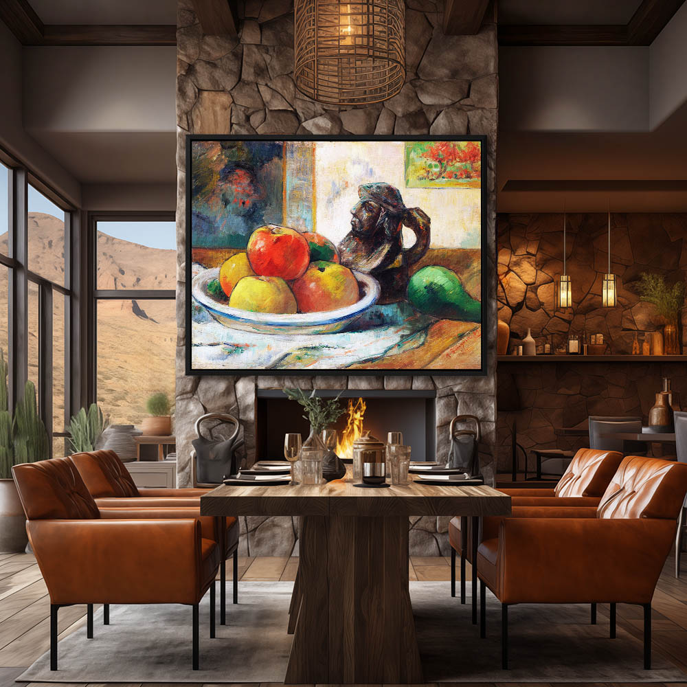 Still Life Painting with a Bowl of Fruit and jug on a Table