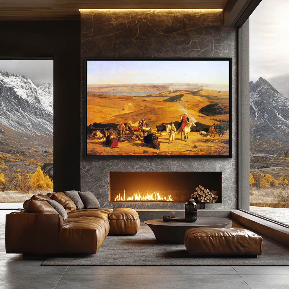 Landscape Painting of a Desert with Figures and Horses and Camels