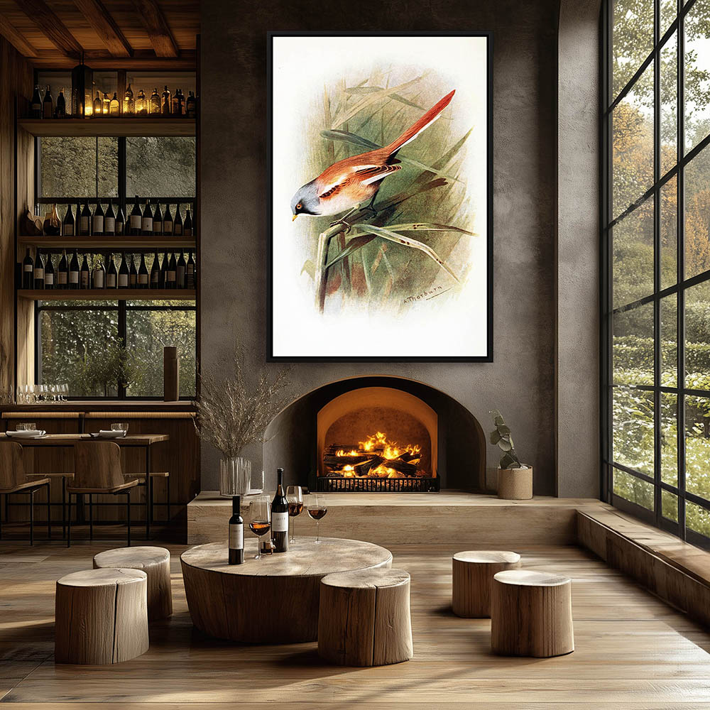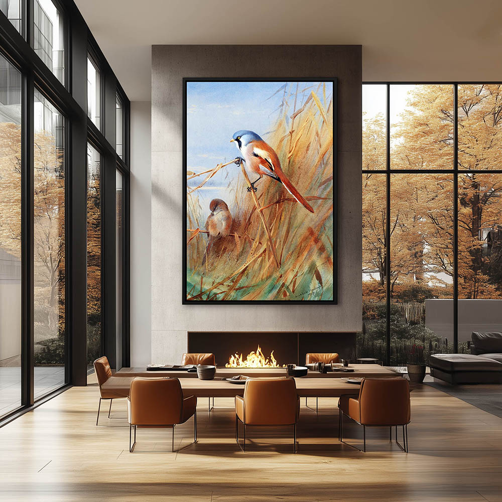 Painting of the Bearded Titmouse Bird in the Reeds