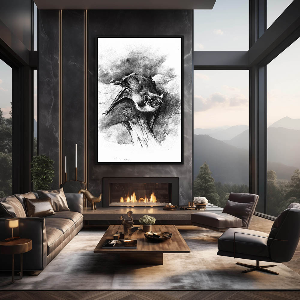 Bat on a Limb in Black and White