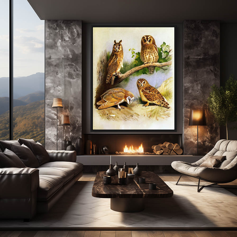 Various Paintings of Owls in Various Settings