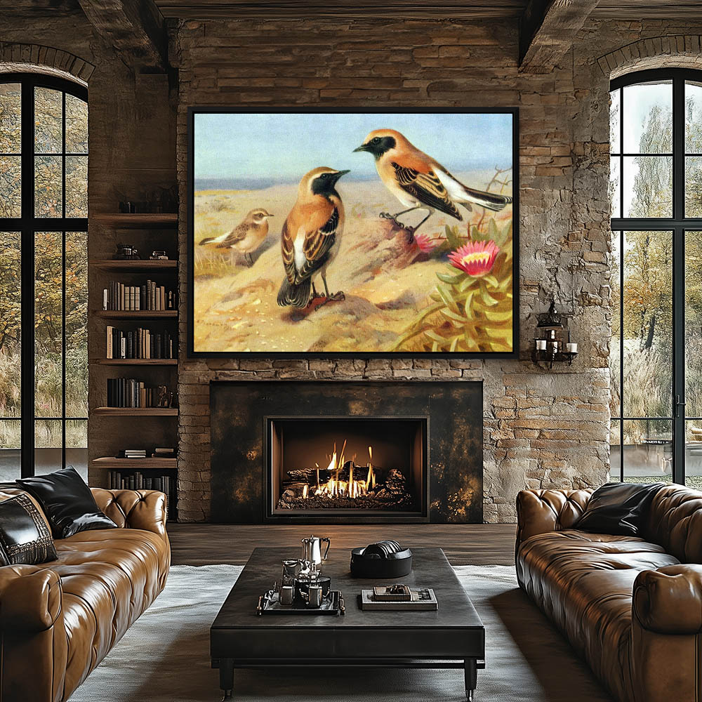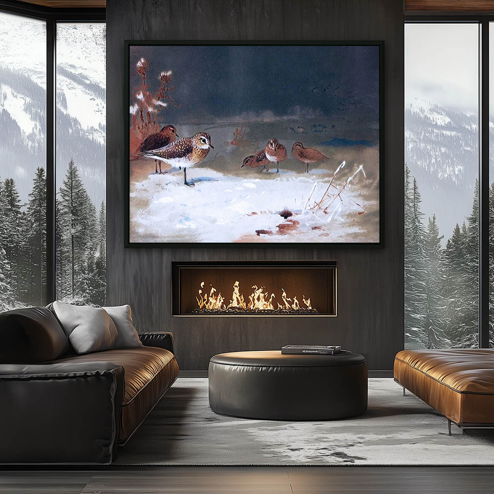 Open Mountainous Landscape Painting with Gamebirds Resting in the Grass