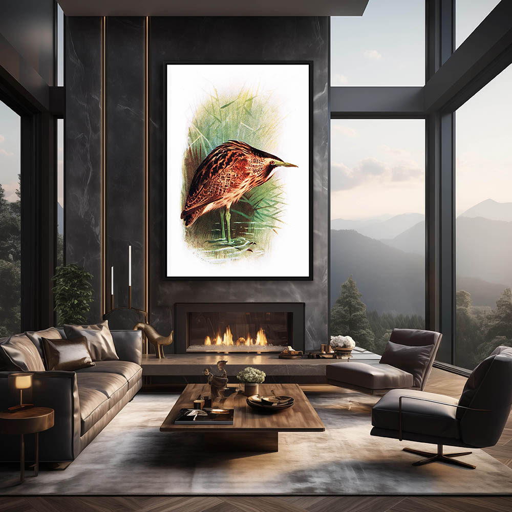 Painting of a Bird Wadding in the Shallows next to the Reeds