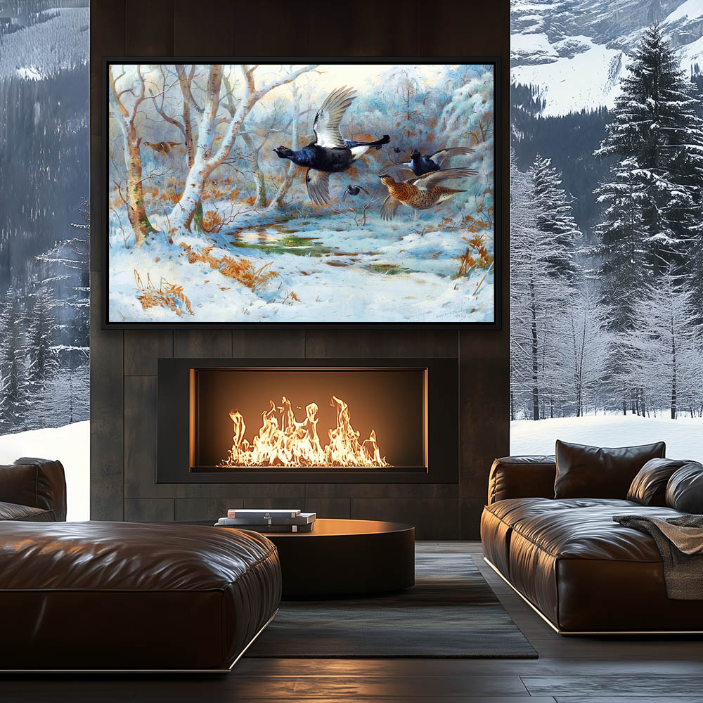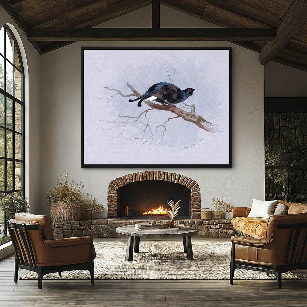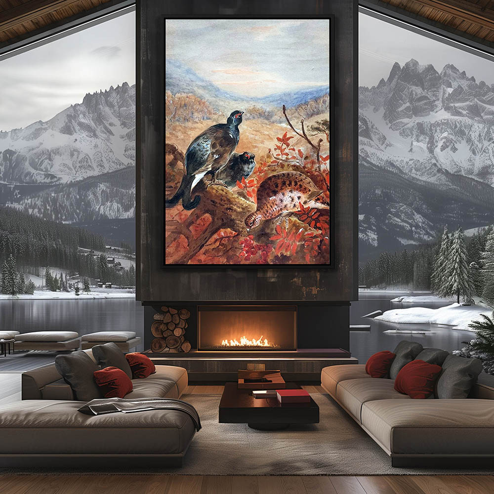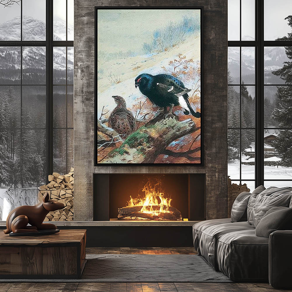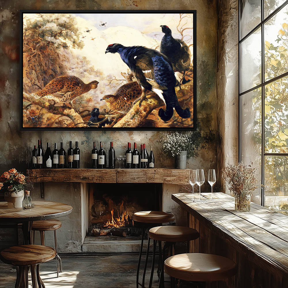 Painting of Black Grouse Gamebirds Resting in the Trees