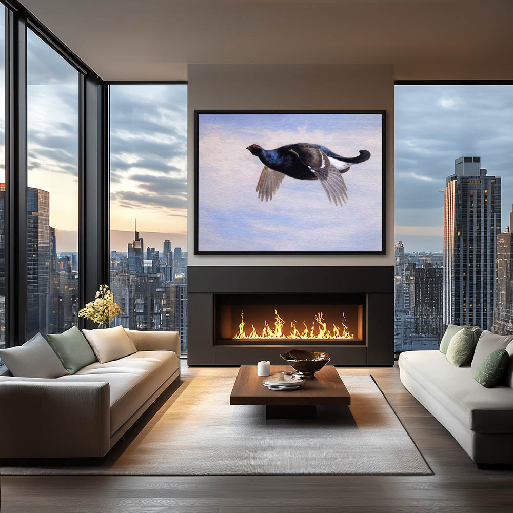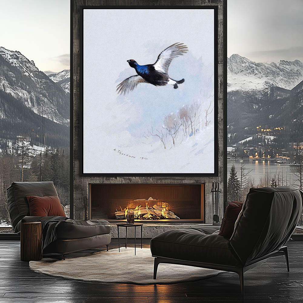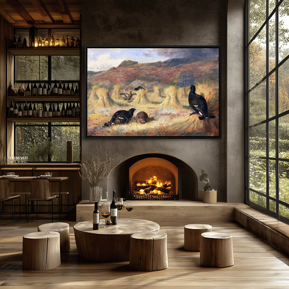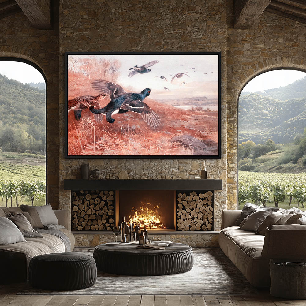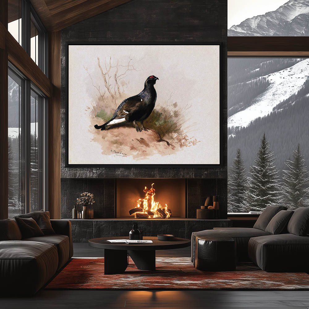 Painting of Black Grouse Gamebirds Resting in the Trees
