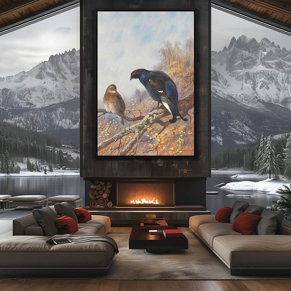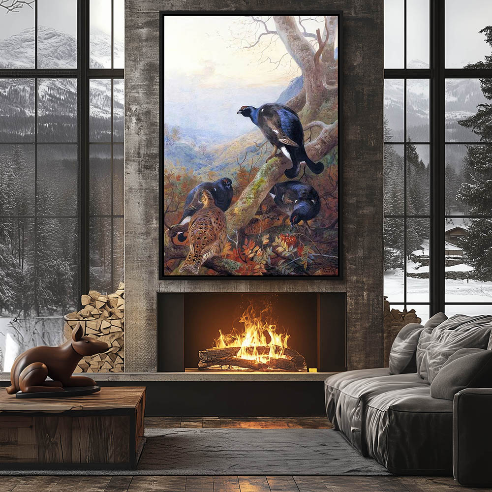 Forest Landscape Painting with Blackgame Grouse