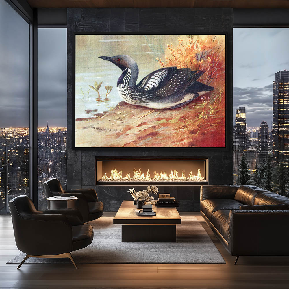 From $29.97Painting of a Black Throated Diver Water Bird Resting on Shore