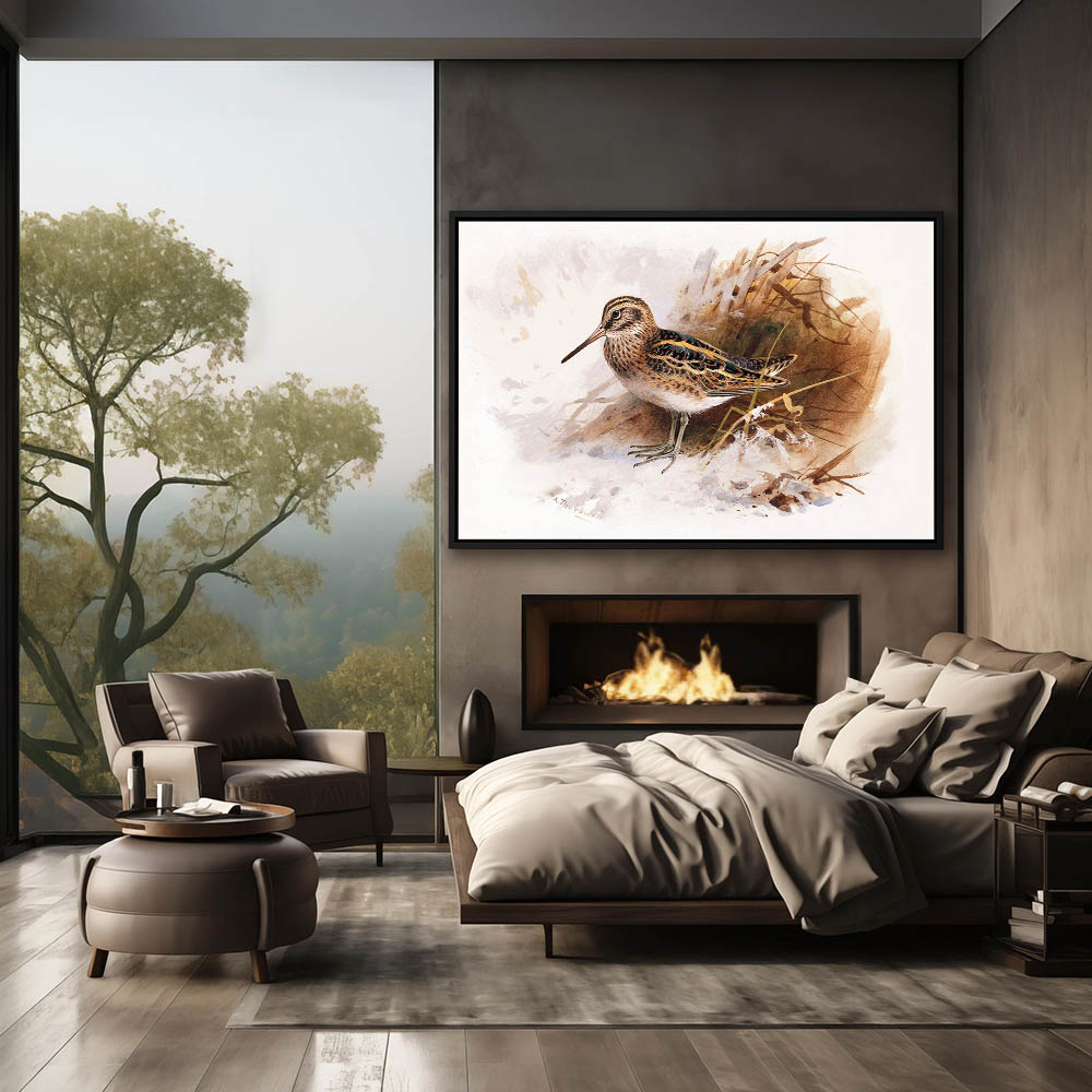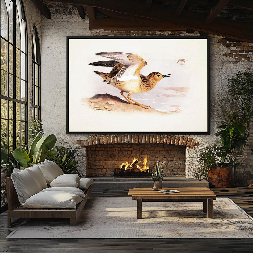 Painting of the Buff Breasted SandpiperBird on a Rock on Shore