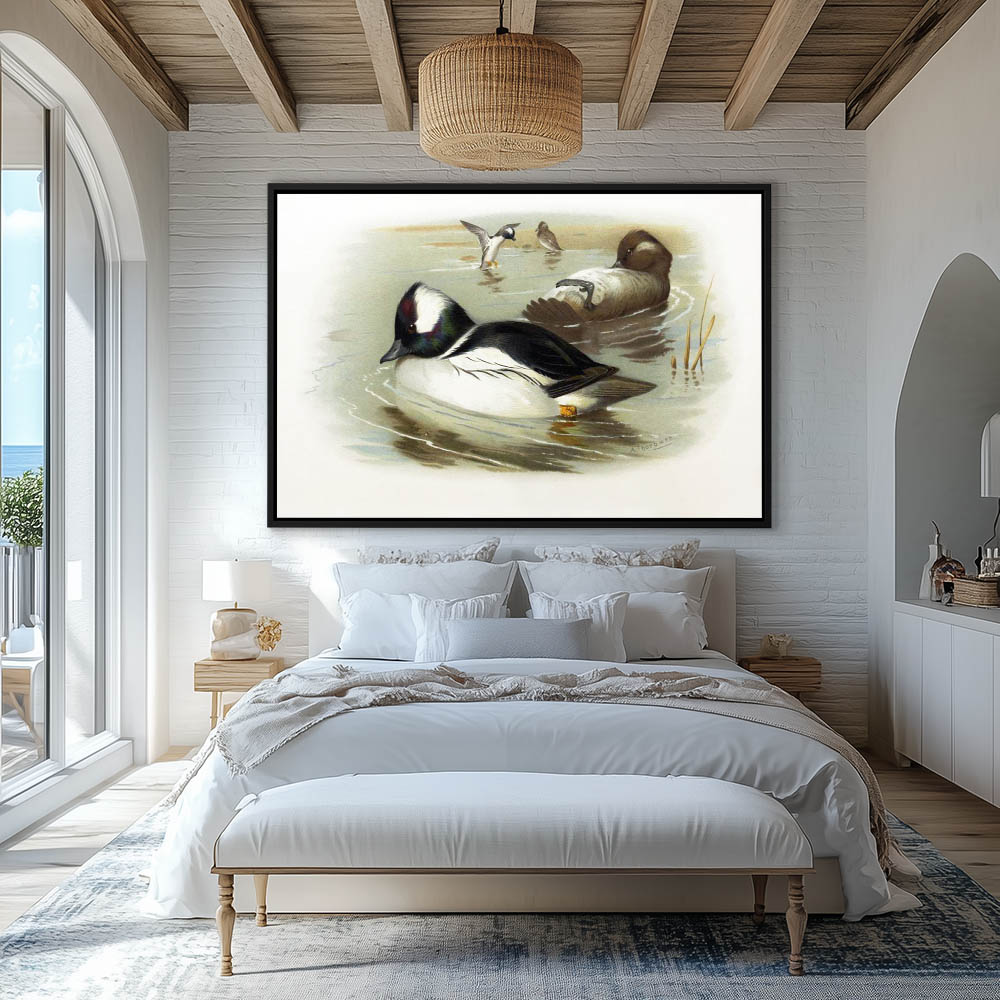 Painting of Buffel Headed Goldeneye Ducks in the Water