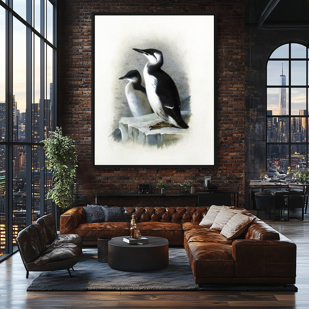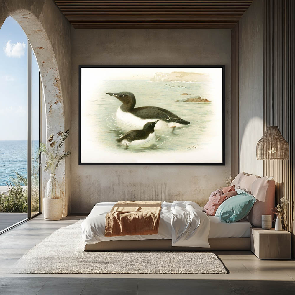 Painting of Brunnichs Guillemot Swimming in the Water with a Chick