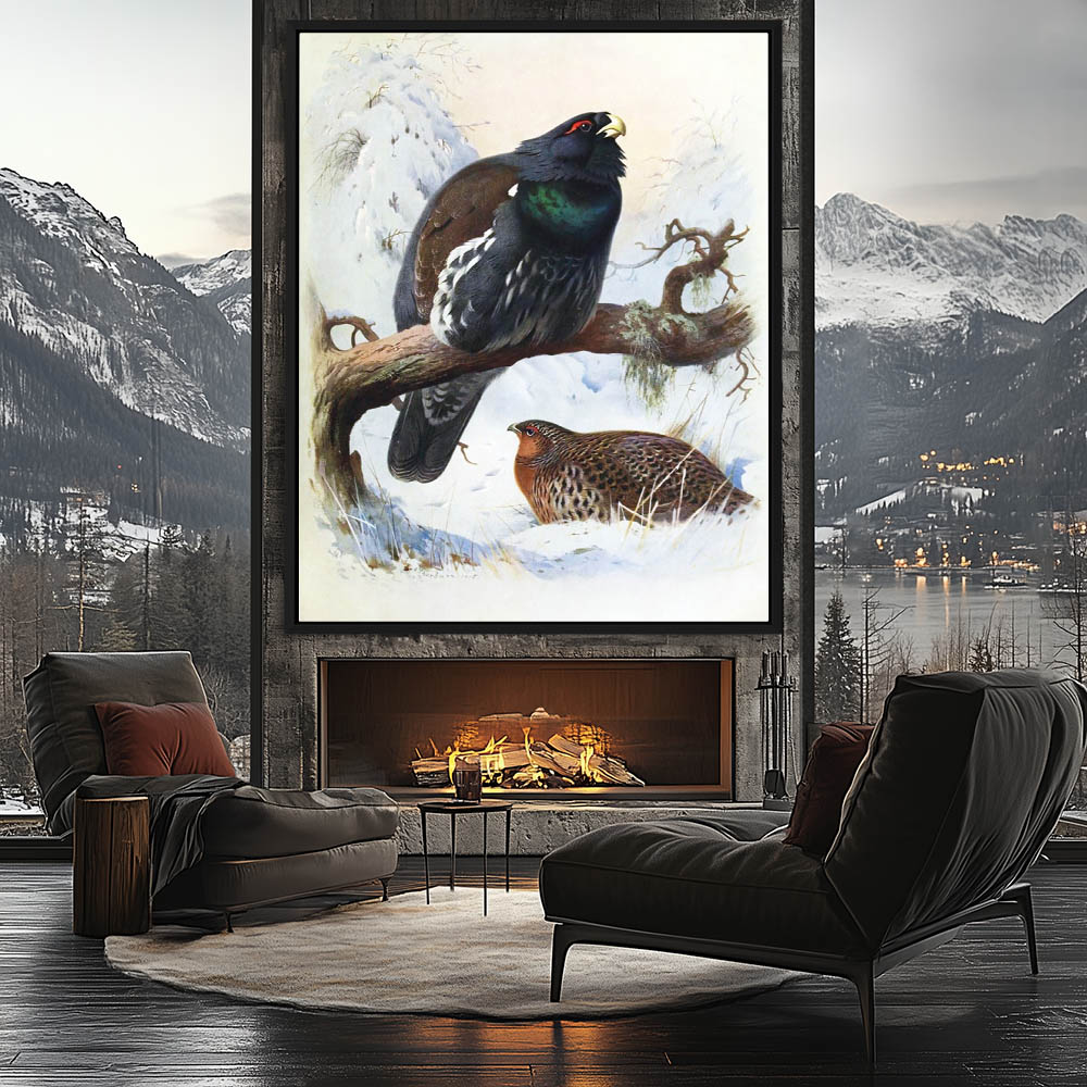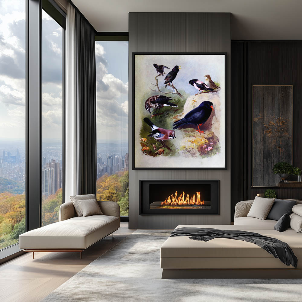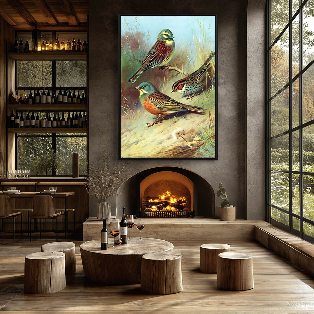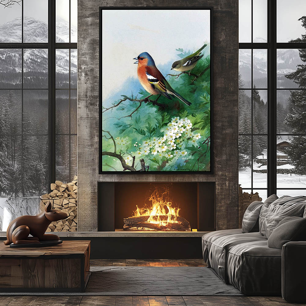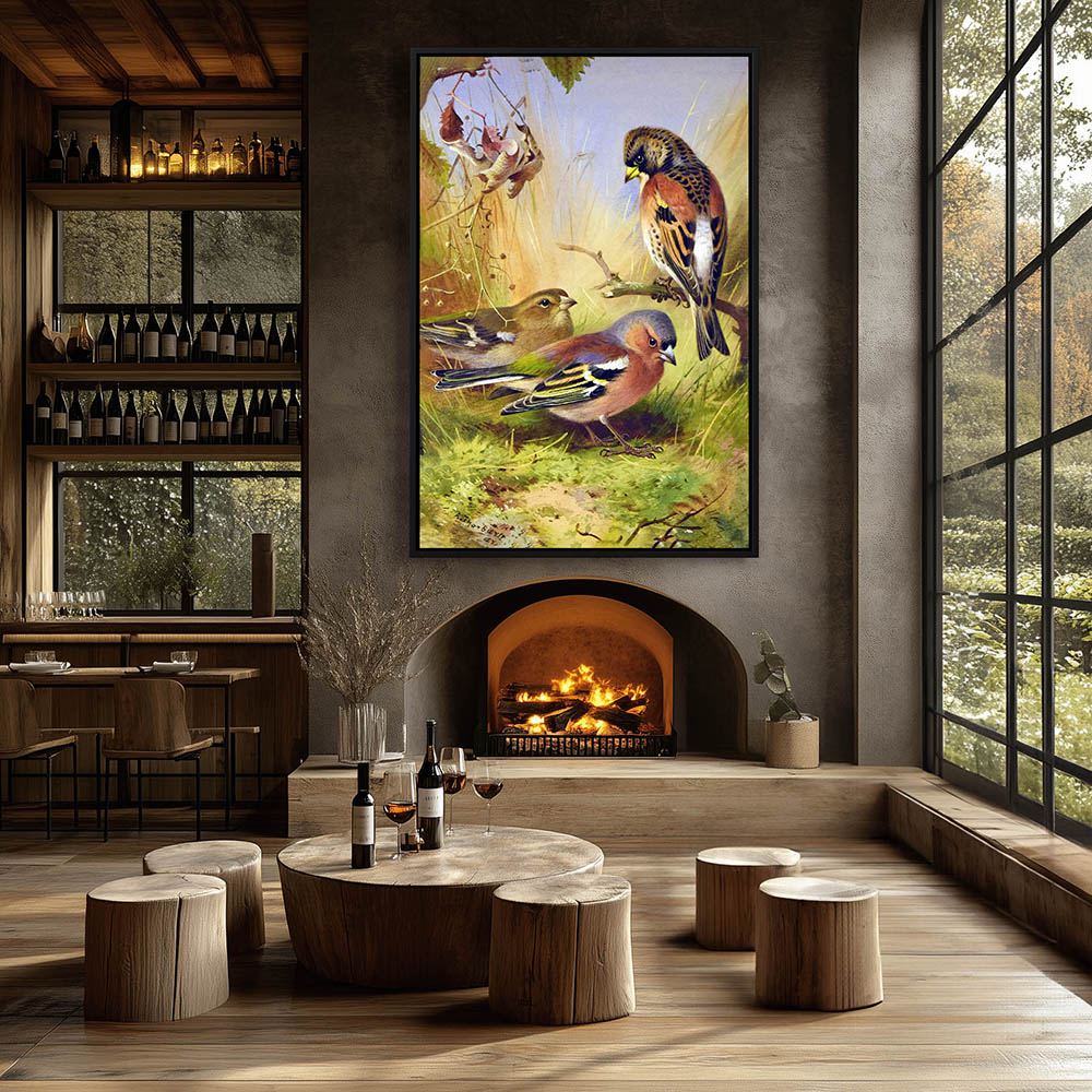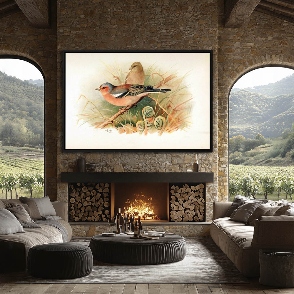Painting of Chaffinch and Brambling Birds Resting on the Ground