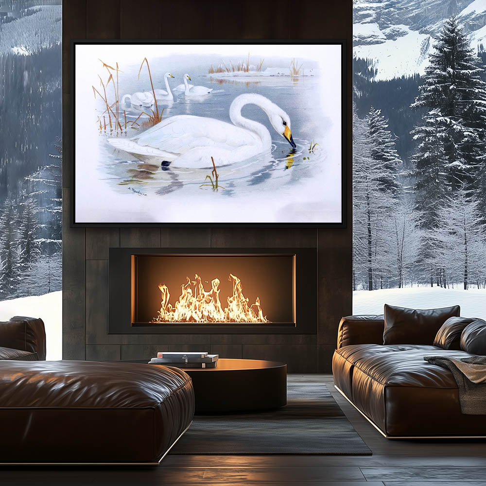 Painting of a Swan on the Pond in Winter