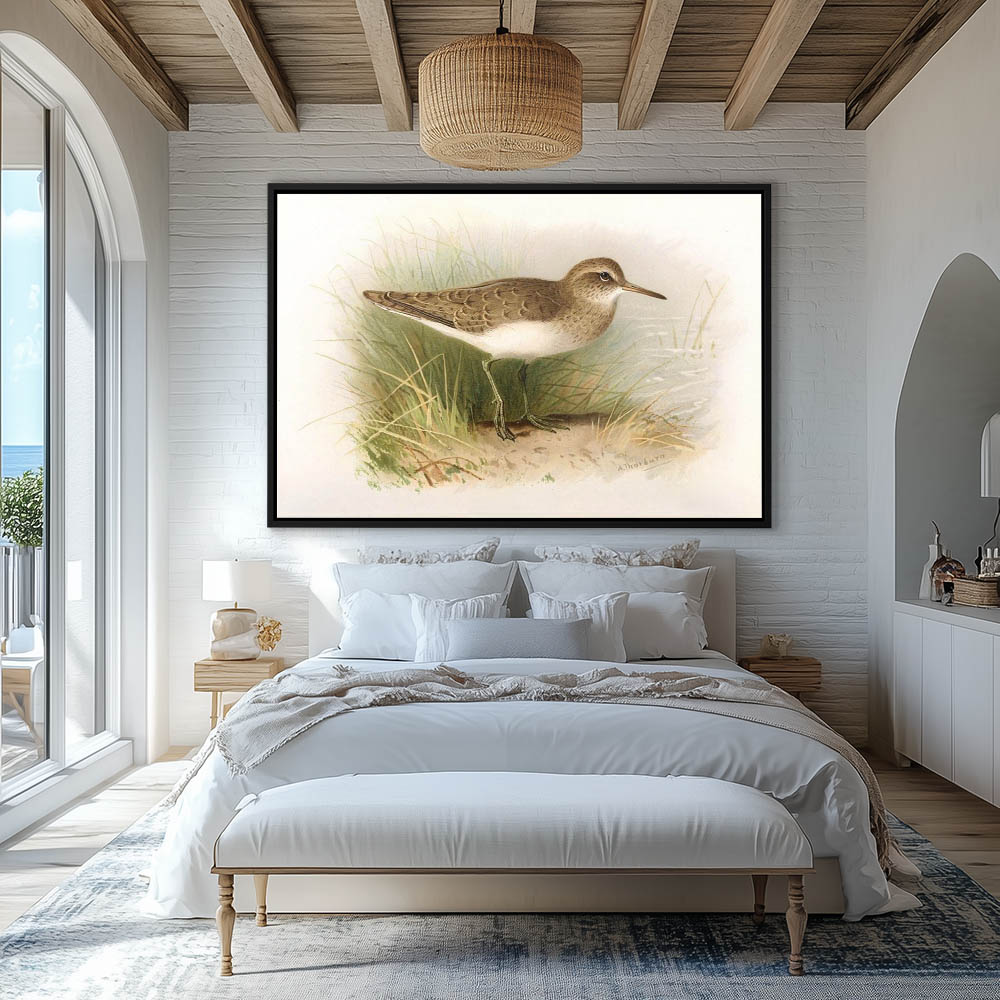 Painting of a Common Sandpiper Bird in the Grass on Shore