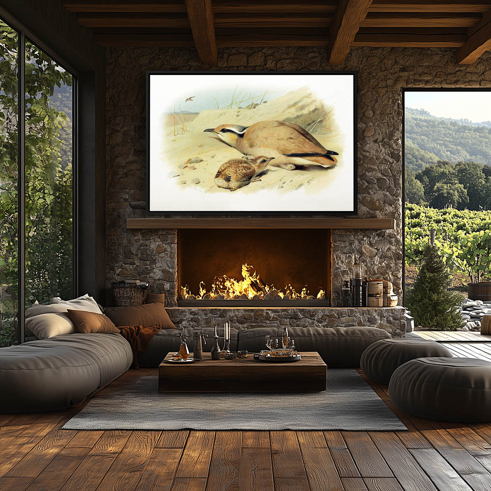 Painting of a Bird and Chick in the Sand