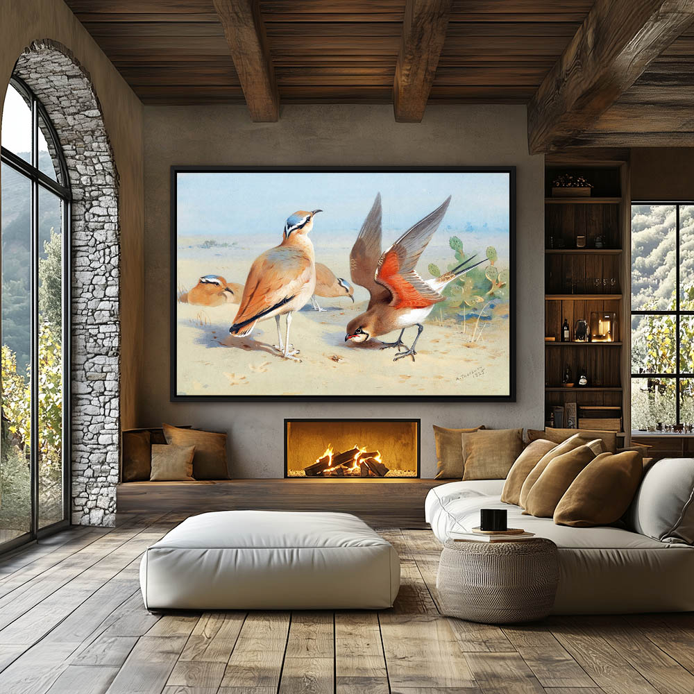 Landscape Painting with Birds in the Sand