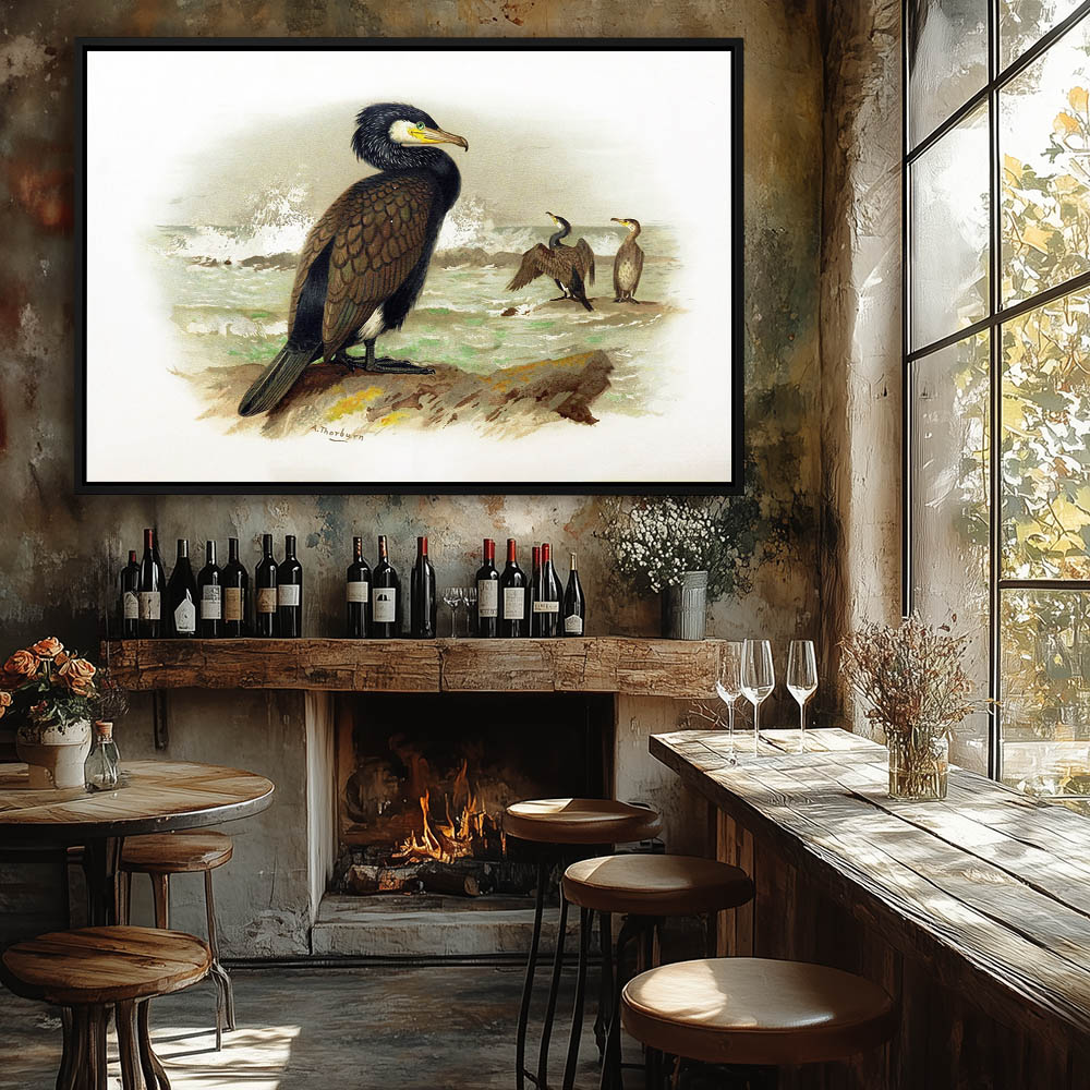 Painting of the Cormorant Birds on the Rocks on Shore