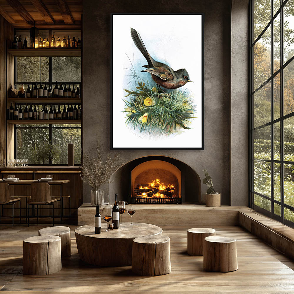 Painting of a Bird Standing on a Limb with Flowers