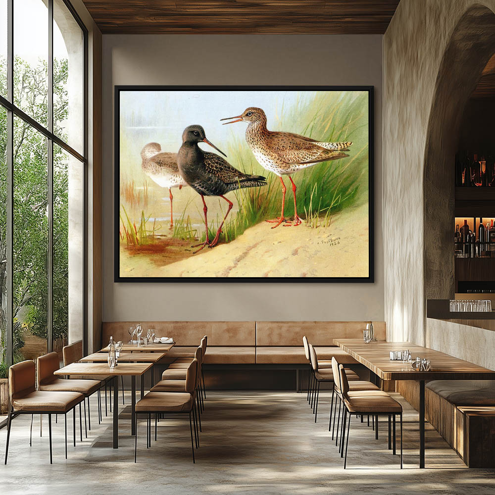 Painting of Curlews in the Grass at the Edge of the Water