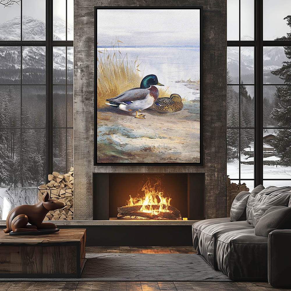 Painting of Mallard Ducks Resting on the Waters Edge