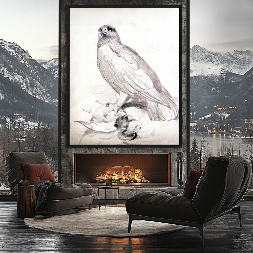 Drawing of a Golden Eagle drawing with His Prey of a Mallard Duck