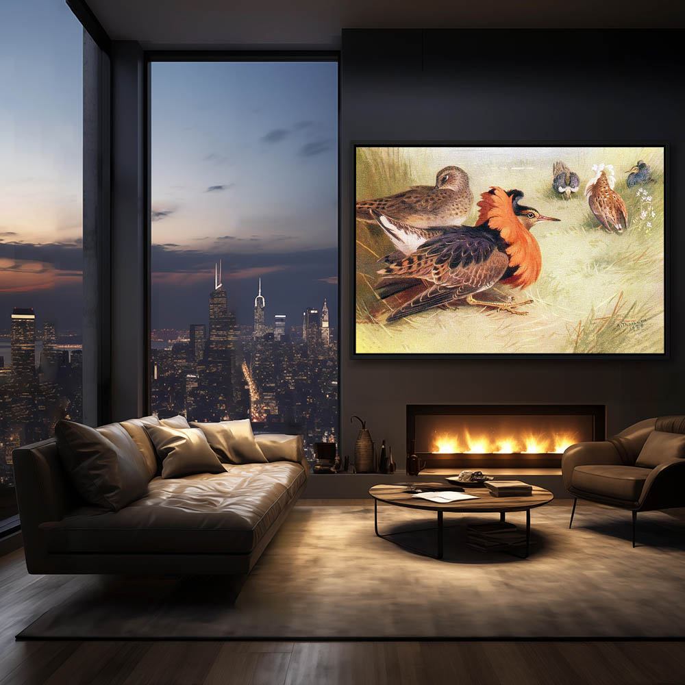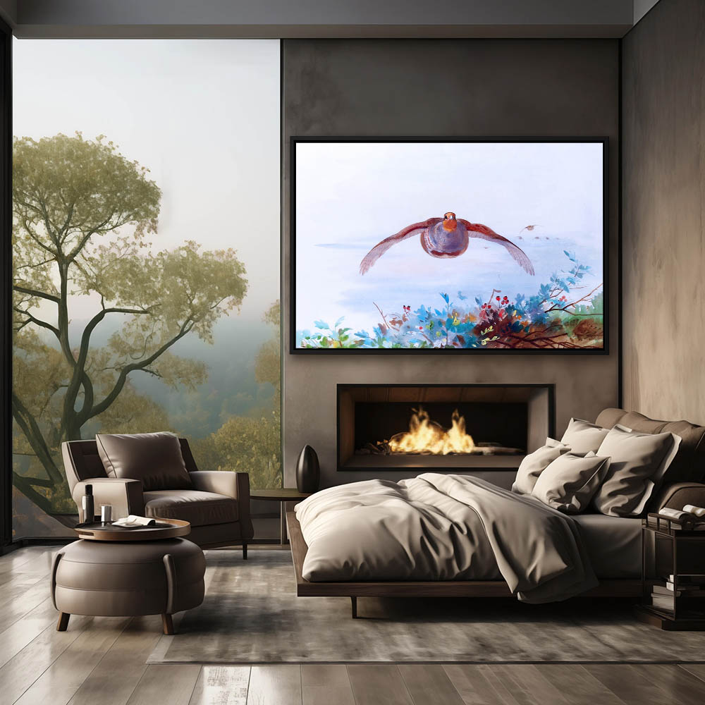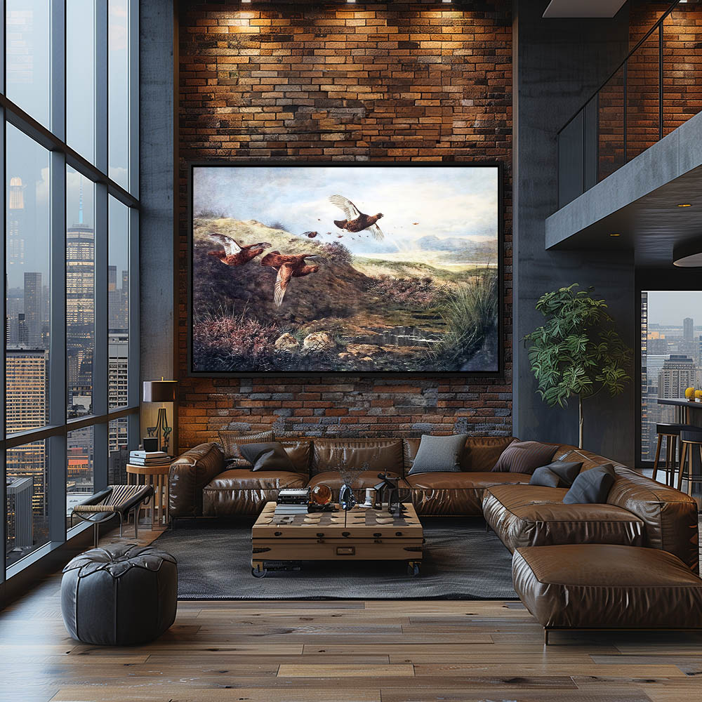 Painting of a Covey of Gamebirds in Winter Huddled Up