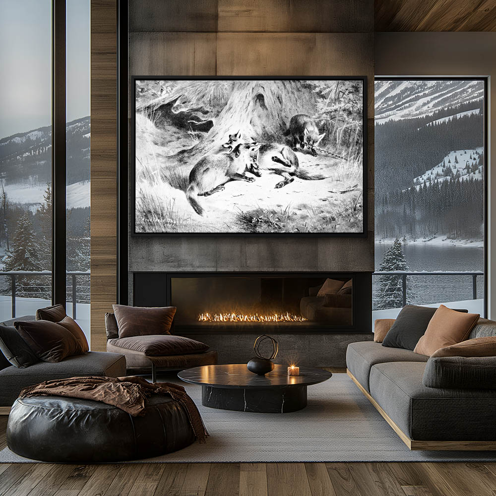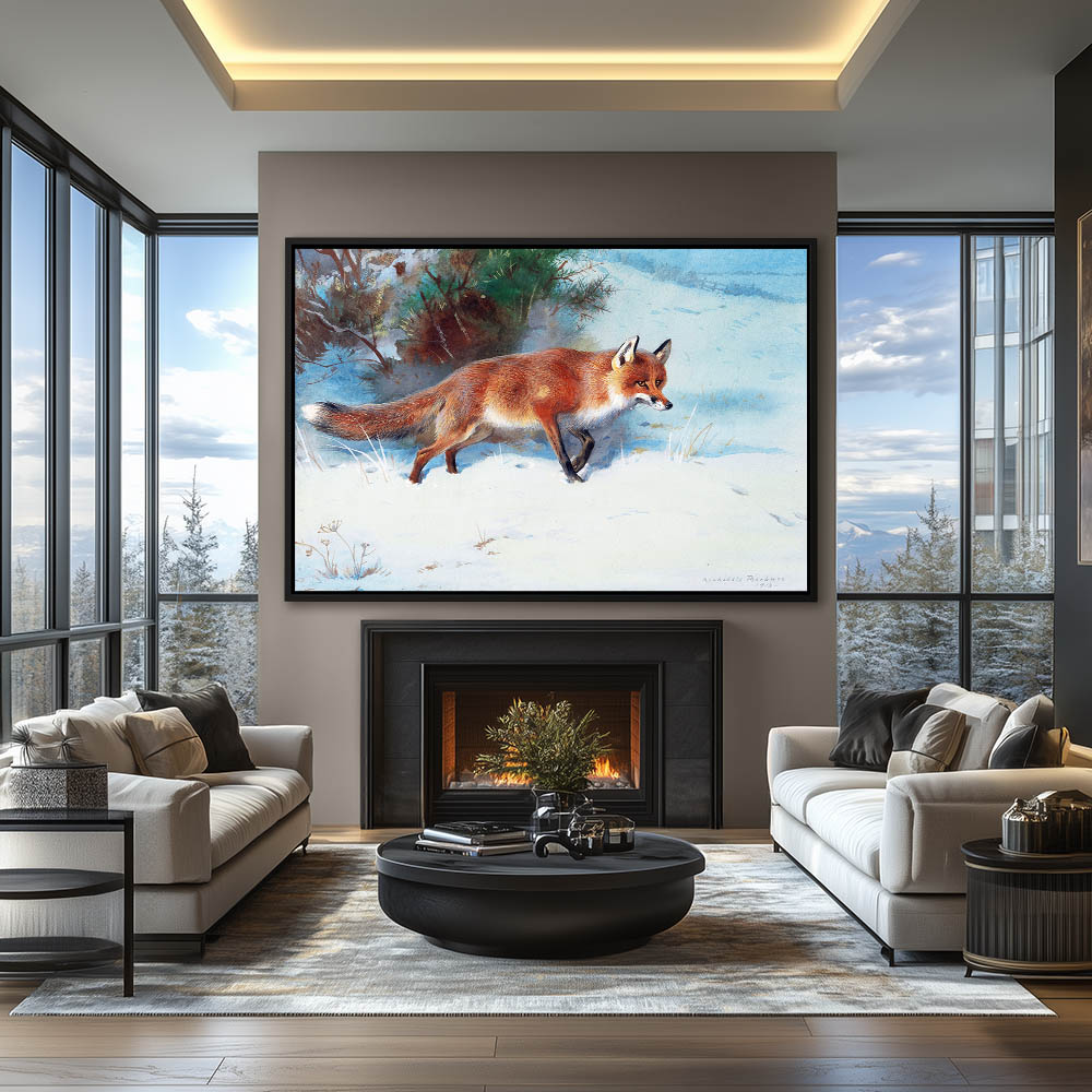 Landscape Painting with a Fox and a Crow and Deer Skull