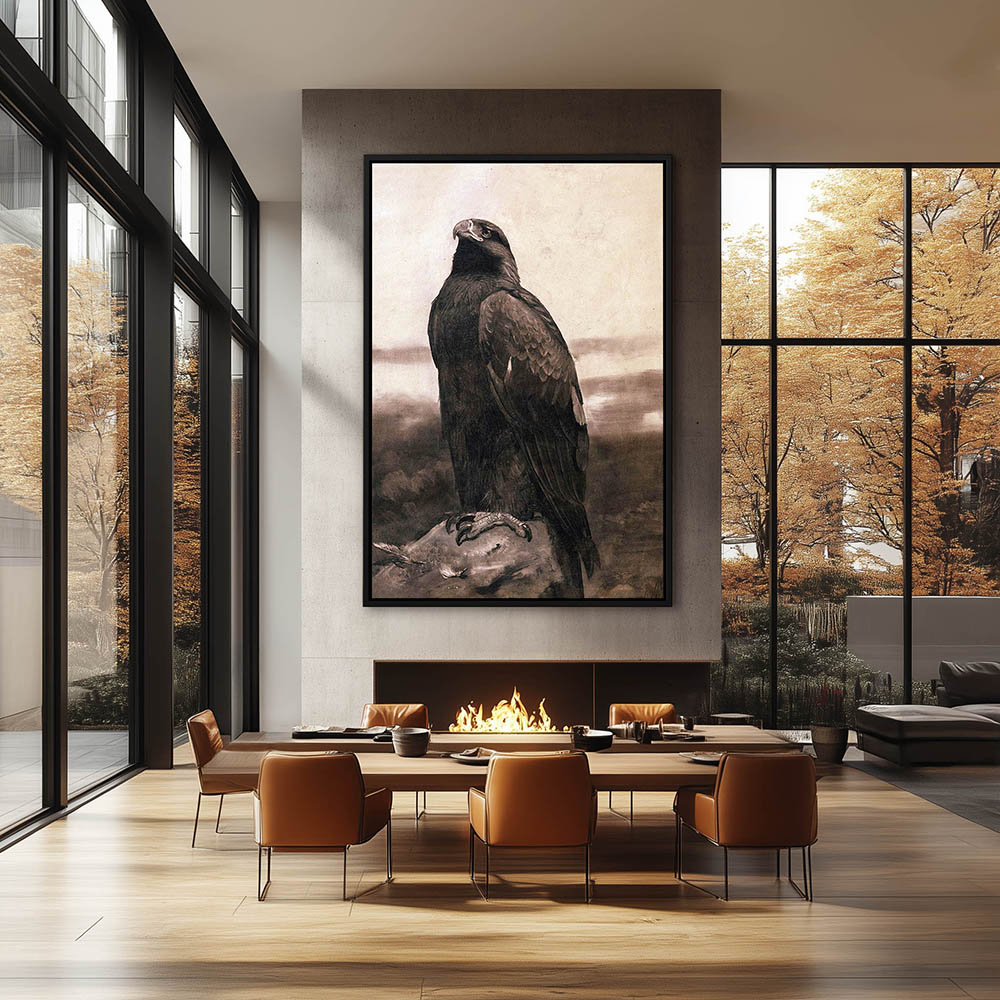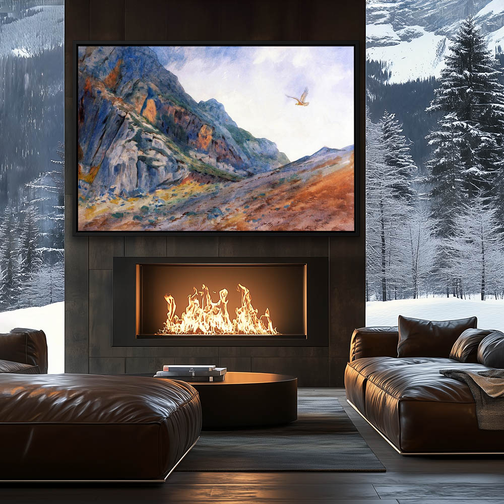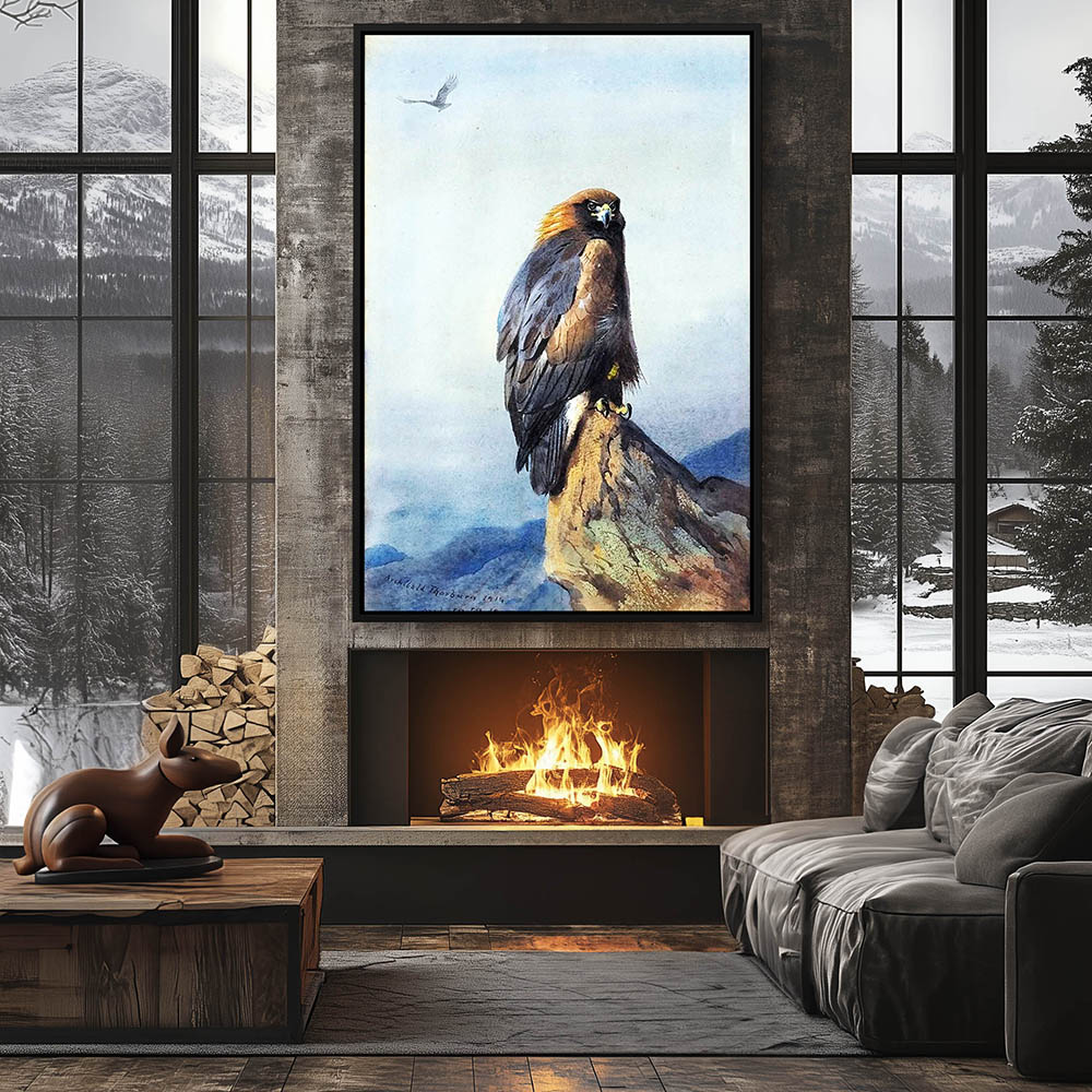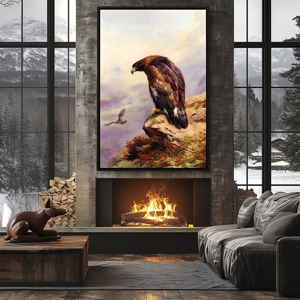 Mountain Landscape Painting with a Eagle Pearched on a Rock
