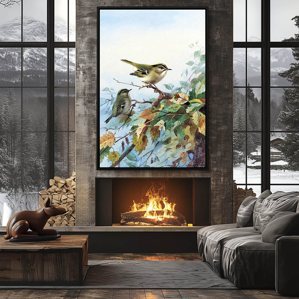Painting of Goldcrests on a Limb