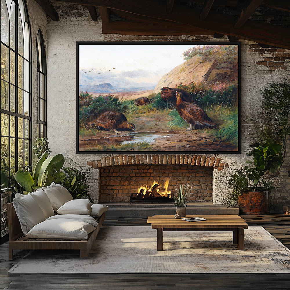 Painting of Grouse at a Pool of Water