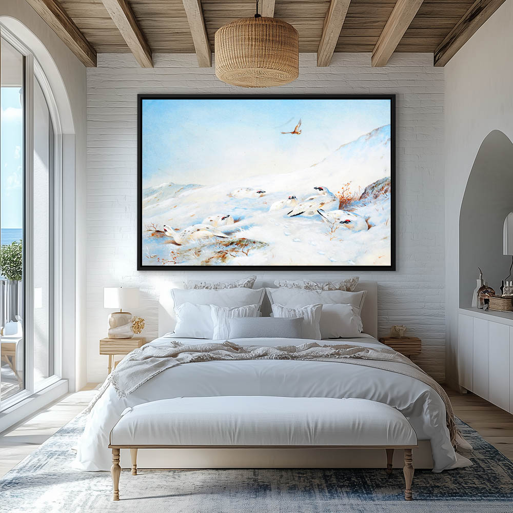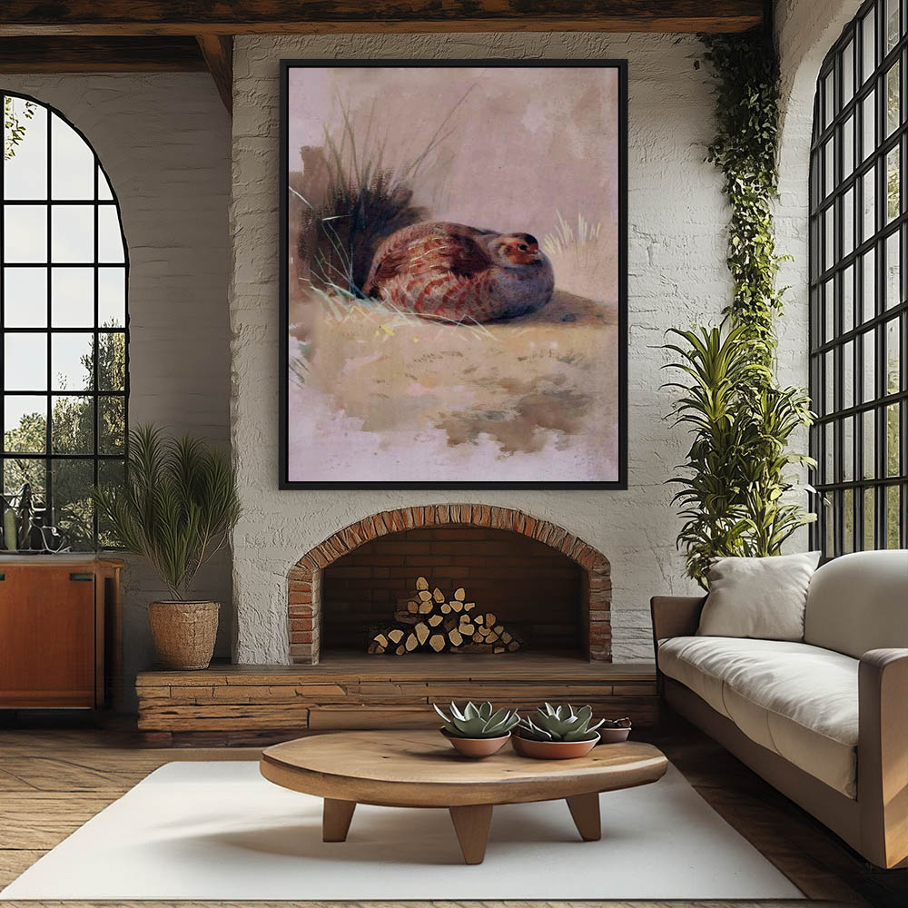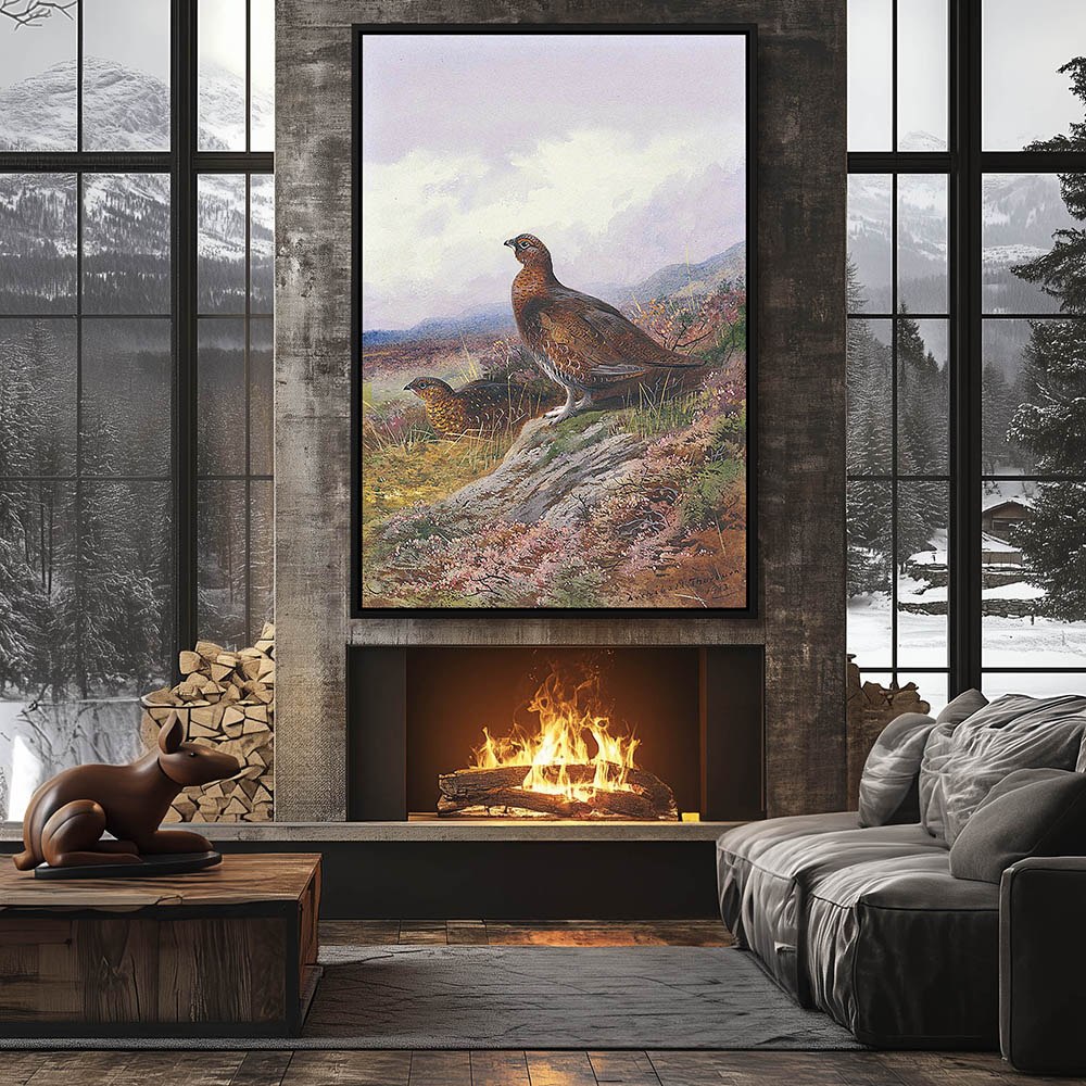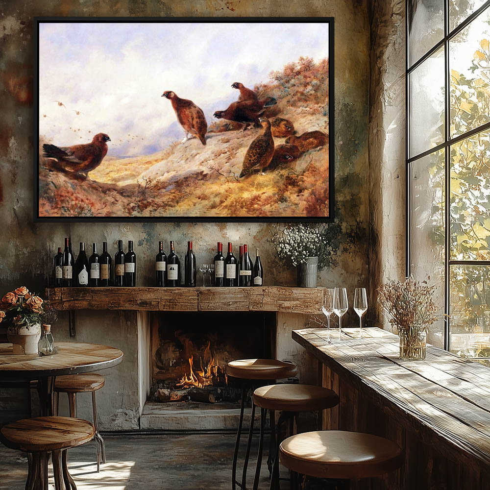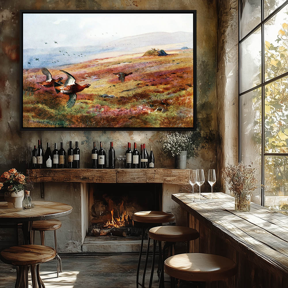 Open Landscape Painting with Pheasants Flying Over the Grassland