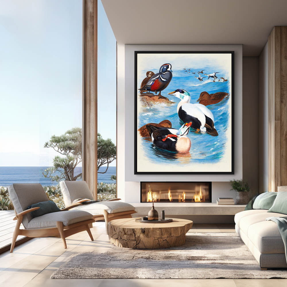 Seascape Painting with Ducks in the Waves