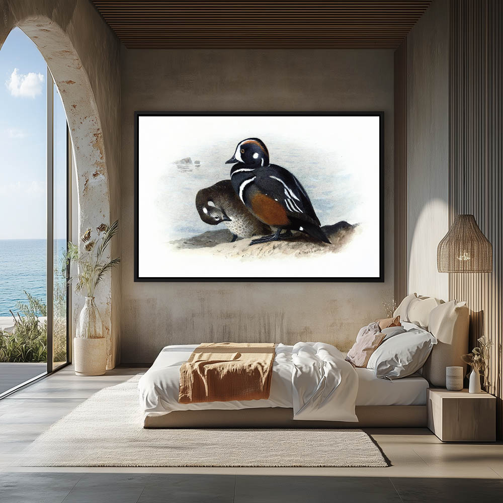 Painting of Harlequin Ducks Resting on a Rock