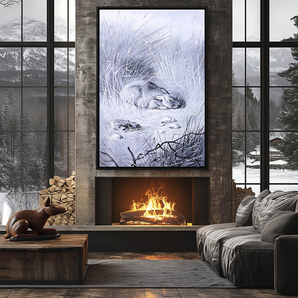 Painting of a Rabbit Laying in the Grass in Black and White