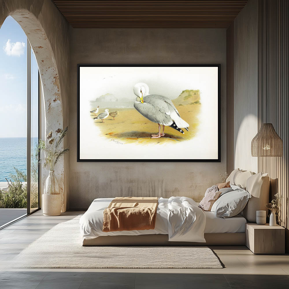 Painting of Herring Gulls on the Sand on Shore