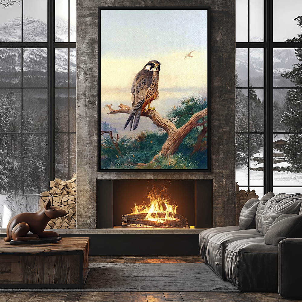 Painting of a Hobby Bird of Prey Perched on a Limb