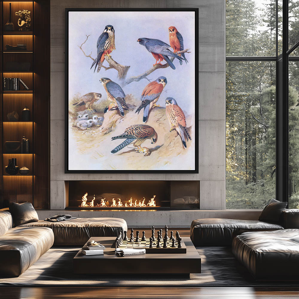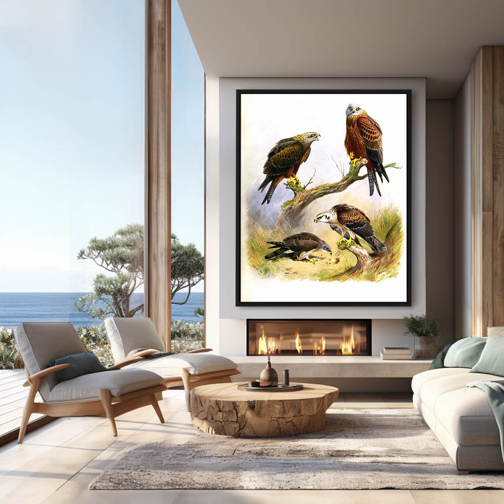Painting of Various Birds of Prey in Verious Settings