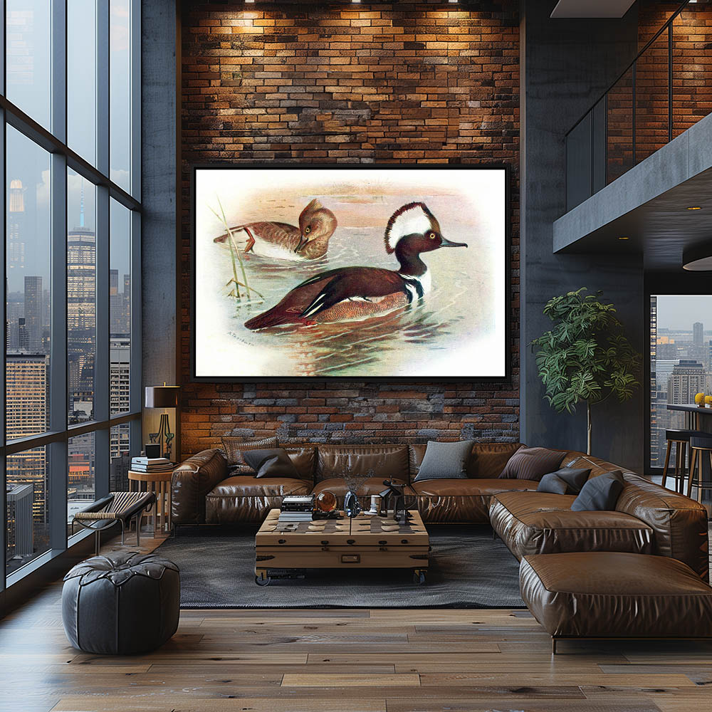 Painting of Hooded Merganser Ducks in the Water
