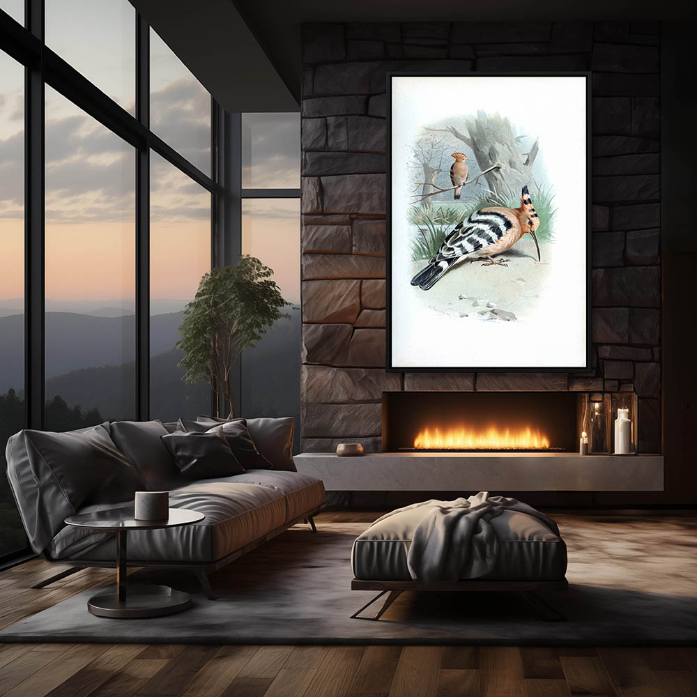 Painting of Two Hoopoo Birds in the Edge of the Grass