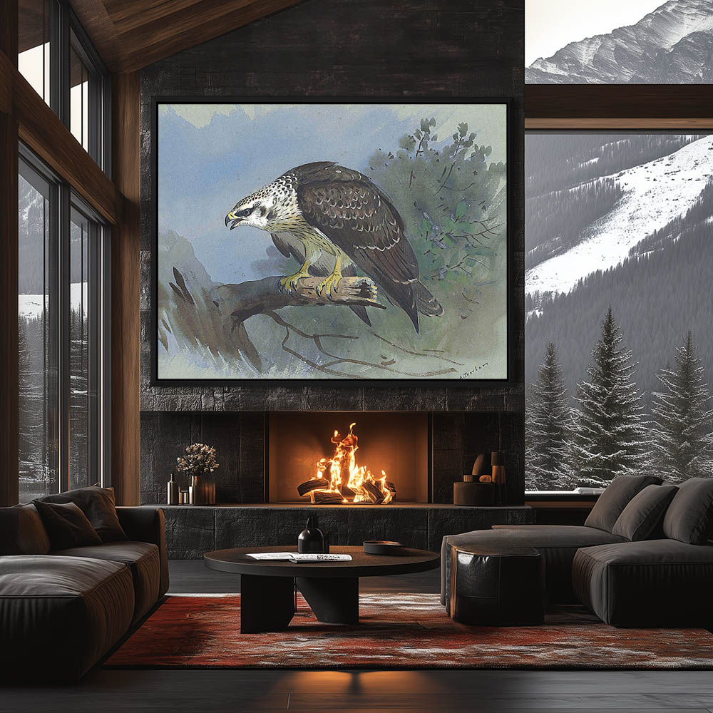 Painting of Honey Buzzard Birds of Prey on a Limb in the Forest