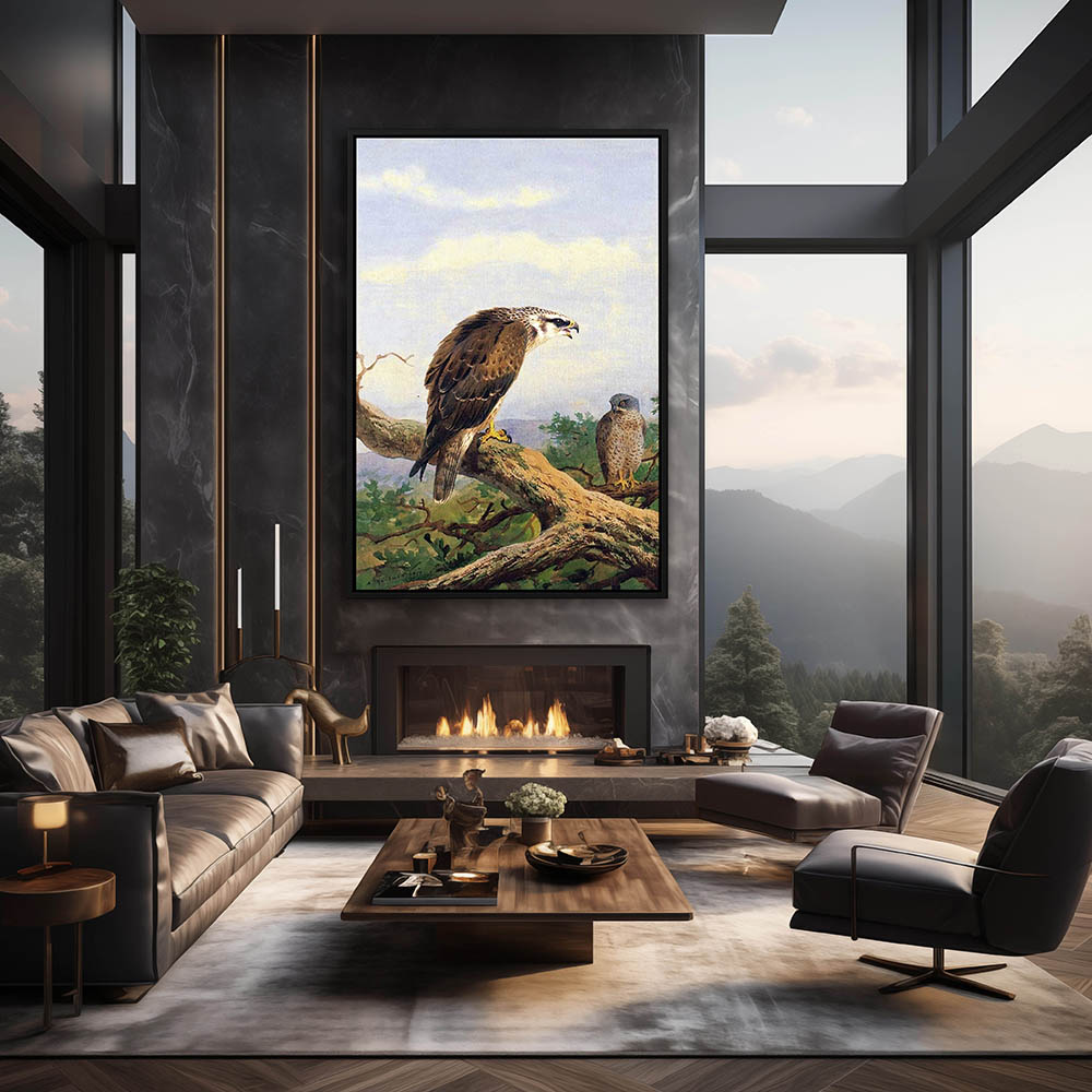 Painting of Honey Buzzards Resting on a Limb