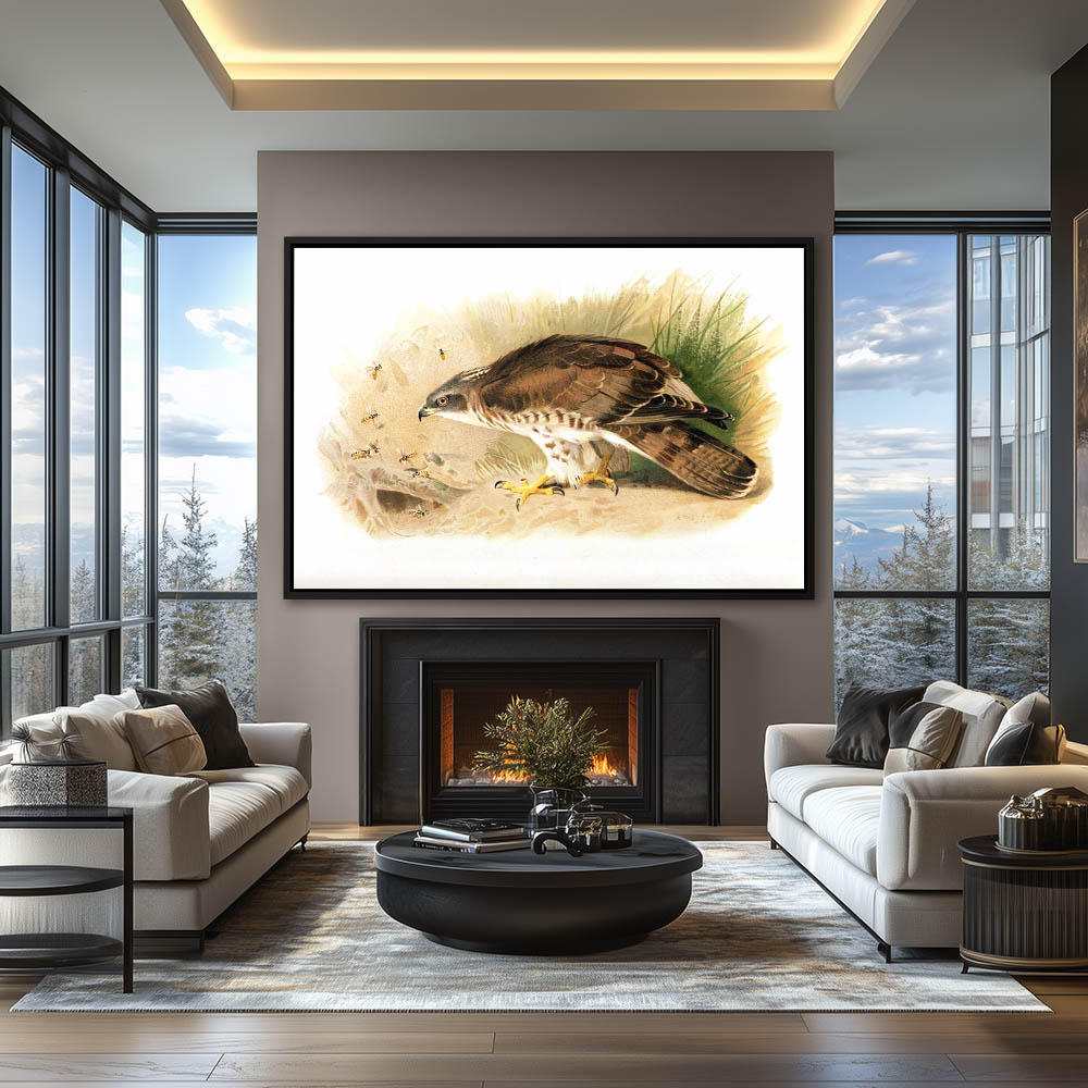 Painting of a Honey Buzzard Bird of Prey Distrubing the Bees