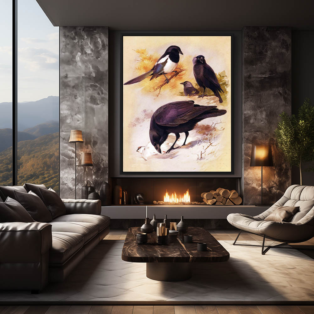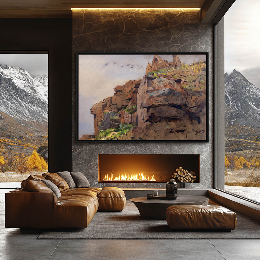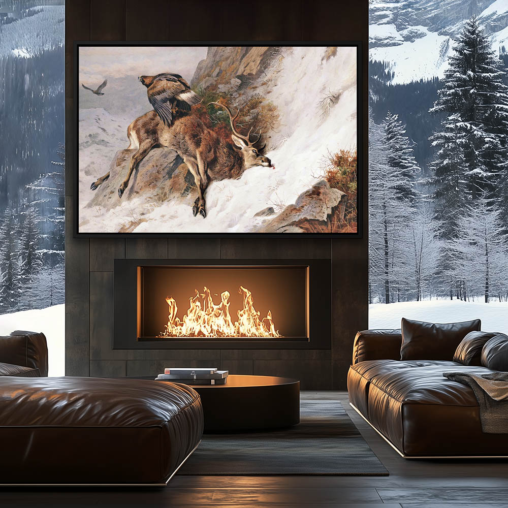 Painting of a Golden Eagle on a Deer in a Mountainous Range
